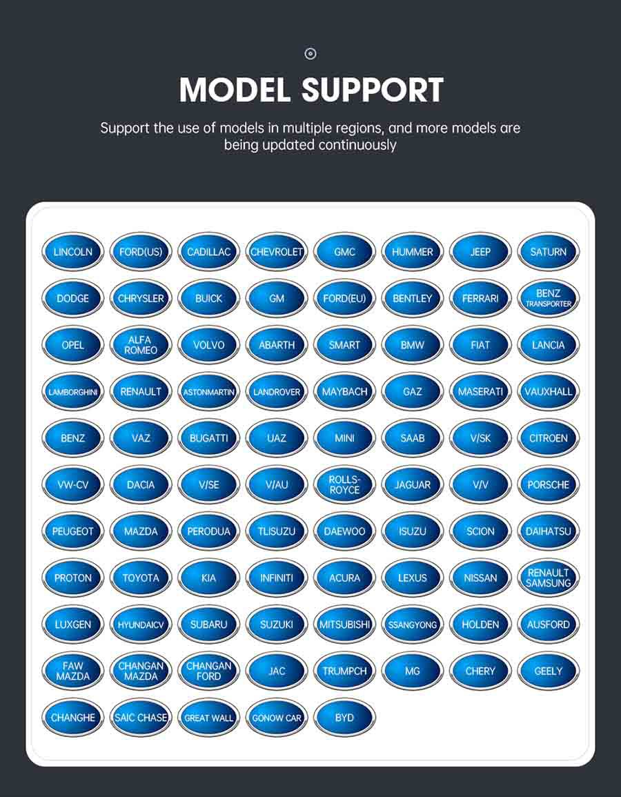 The software of A80 PRO has a wide range of compatibility and can be used to diagnose vehicles from over 100 brands in the US, Europe and Asia. Moreover, you can get more newly added car models with the fast-release software update service.